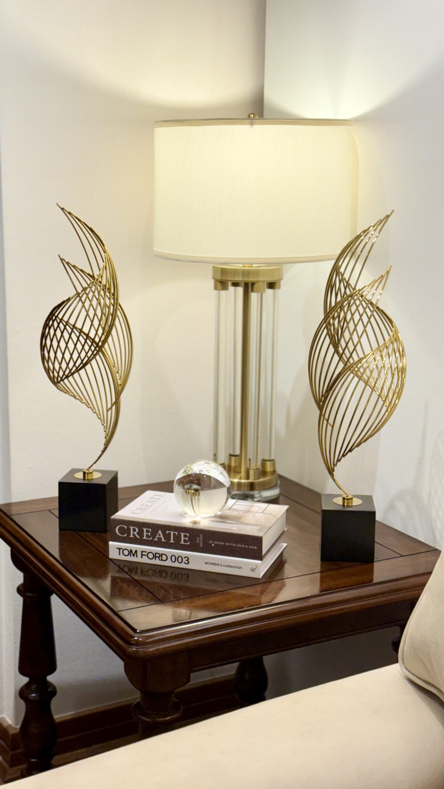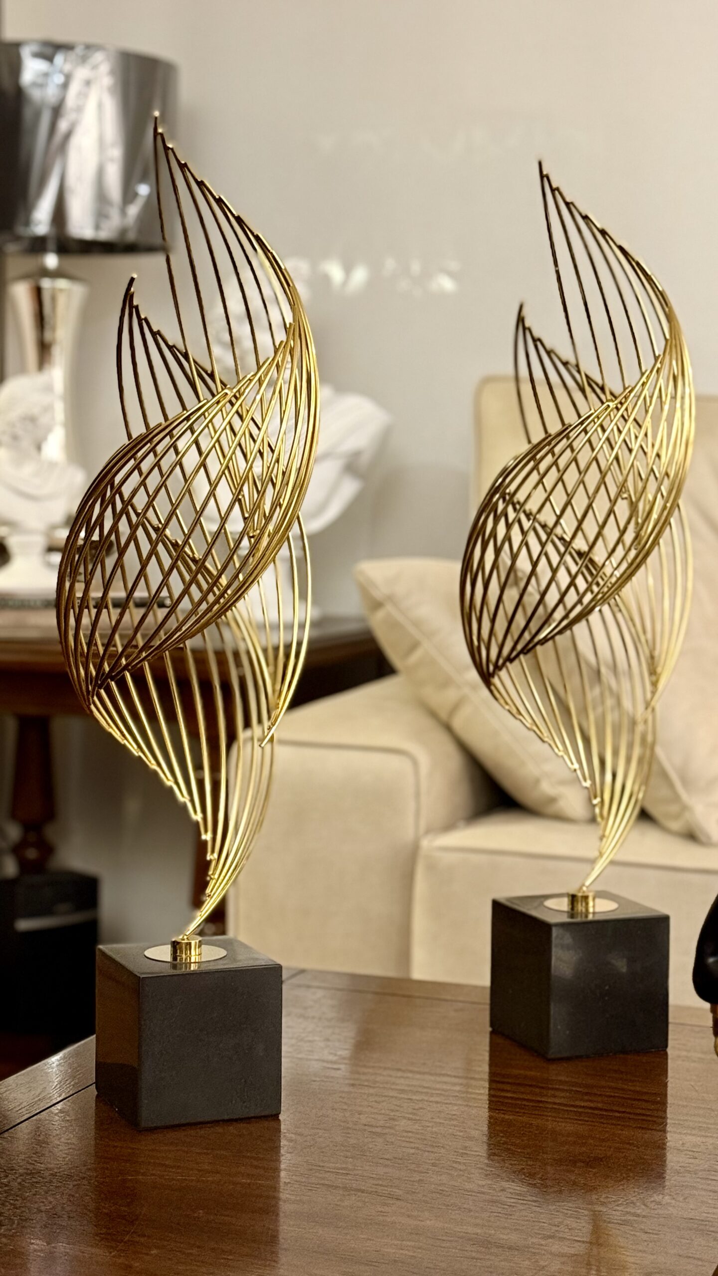Bellas y elegantes esculturas compuestas de filamentos metálicos simulando una vela. Pon a volar tu imaginación con el viento que impulsará estas velas… ¿dónde las imaginas en tu casa?. Tienen una preciosa base de mármol negro.