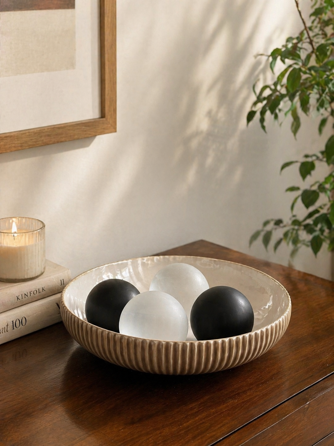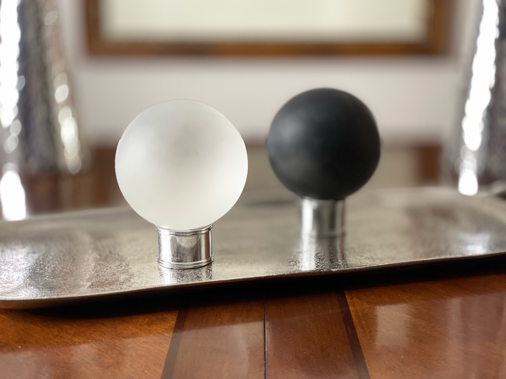 Disponibles en acabado mate blanco y negro, estas piezas destacan por su diseño limpio y atemporal, ideales para complementar bandejas, bowls o superficies como mesas de centro, arrimos y repisas.