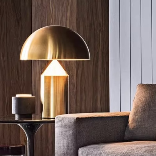 Fabricada en metal con acabado dorado, aporta calidez y sofisticación a cualquier ambiente. Su iluminación cálida crea una atmósfera acogedora, convirtiéndola en una pieza ideal para mesas laterales, arrimos o veladores. Perfecta para realzar espacios como living, sala de estar o estudios.